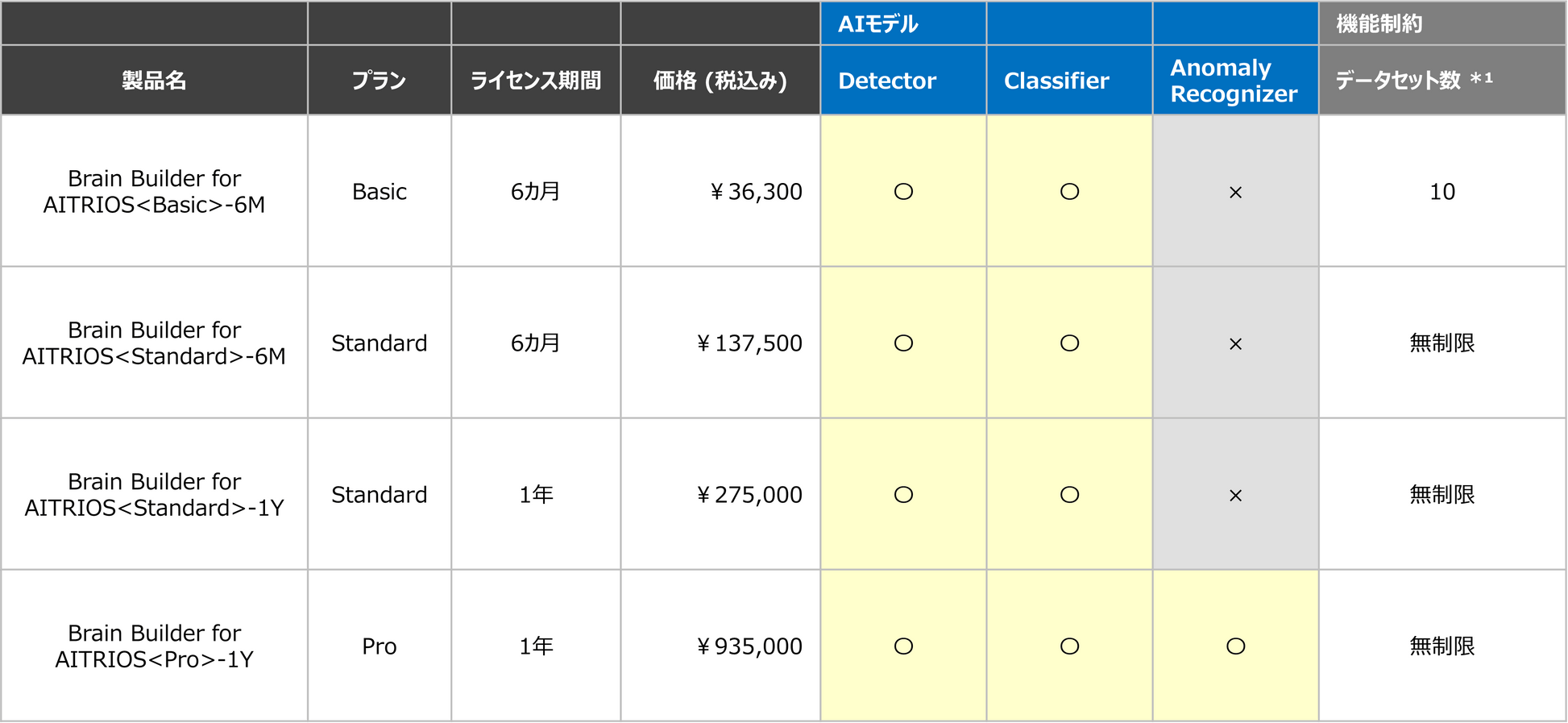 | System Requirements | Brain Builder for AITRIOS(GPU/CPU) |